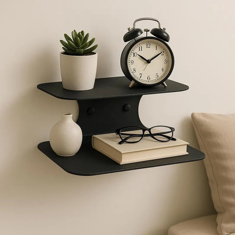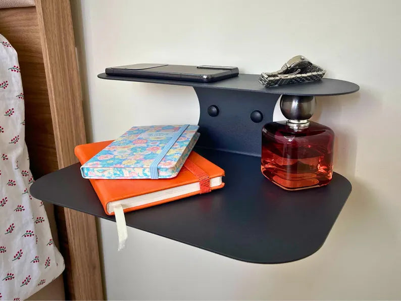 Modern Floating Nightstand, Wall-Mounted Bedside Table, Minimalist Metal Shelf, Contemporary Bedroom Organizer, Metal Double-Tier Shelf